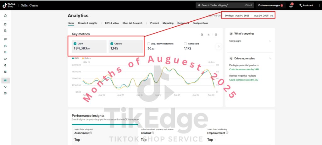 As the Brand Manager for this lifestyle project, I’m thrilled with our August 2025 performance on TikTok Shop. Starting from modest baselines, we implemented the ACE framework (Attract, Convert, Engage) to boost visibility and sales, culminating in over $84K GMV and a loyal customer influx. This growth validates our focus on authentic content and data-driven tweaks—excited for even bigger wins ahead!